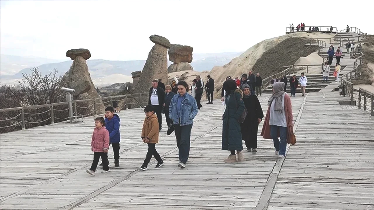 Ramazan Bayramı'nın hafta sonuna denk gelmesine ve ülke genelinde olumsuz hava şartlarının etkili olmasına rağmen, Kapadokya yerli ve yabancı birçok turisti ağırladı. Peribacaları, tarihi kiliseleri, göz alıcı vadileri ve eşsiz mimarisiyle büyüleyici bir deneyim sunan bu bölge, bayram boyunca Türkiye'nin en popüler turistik destinasyonlarından biri olmayı sürdürdü.